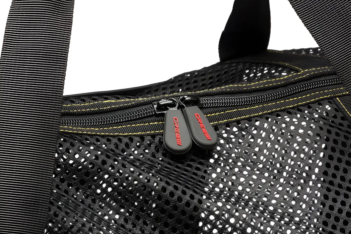Bolsa tipo duffel resistente y espaciosa, ideal para transportar equipo de buceo. Su malla permite drenaje y secado rápido. Cuenta con cremalleras YKK, asas acolchadas y diseño plegable para fácil almacenamiento. Perfecta para viajes y uso en resort.
