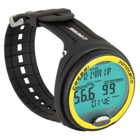 DONATELLO es un computador de buceo intuitivo y resistente, ideal para principiantes y buceadores recreativos. Ofrece gestión de aire y Nitrox, algoritmo RGBM con Deep Stop y una pantalla amplia de fácil lectura. Su manejo con un solo botón y diseño compacto lo hacen práctico, fiable y perfecto para viajar.