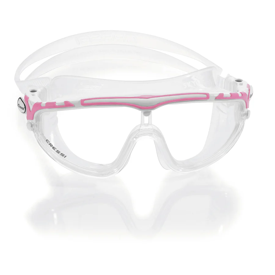 Gafas tipo máscara monovolumen con ajuste adaptable a distintos rostros gracias a su estructura flexible. Incorporan lentes resistentes con protección UV, antivaho y antiarañazos, además de hebillas de regulación precisa. Cómodas, duraderas y fáciles de ajustar para uso acuático.