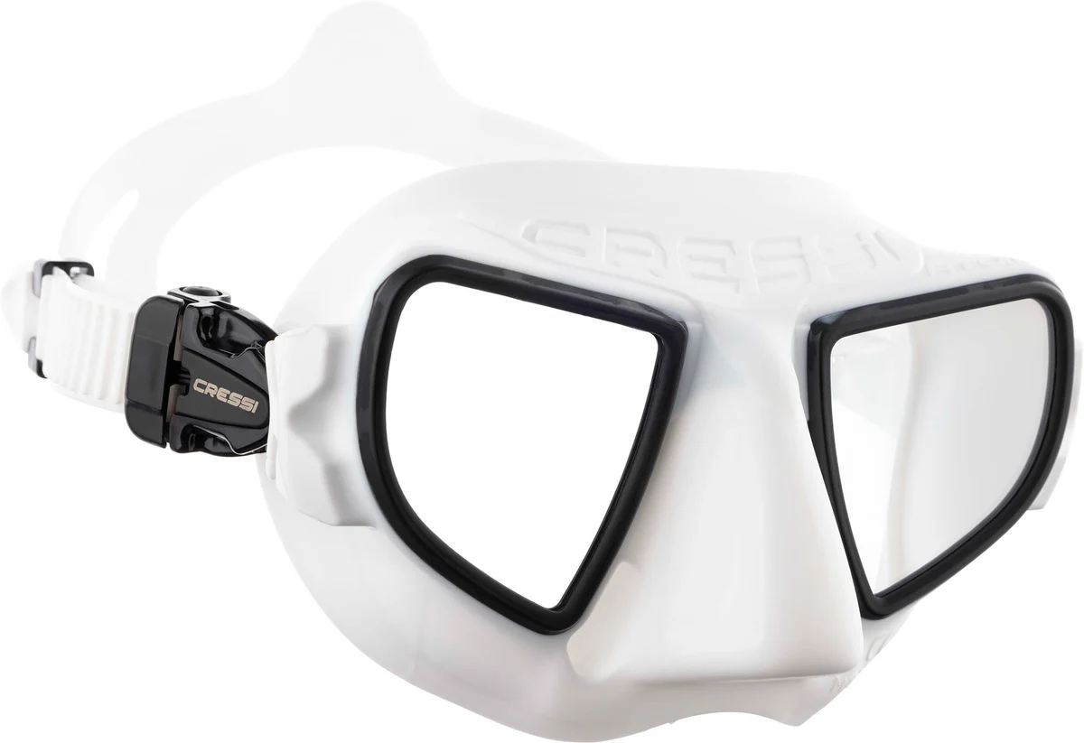 Atom es una máscara diseñada para el apneista exigente. Cuenta con un volumen interno extremadamente bajo, ideal para la apnea. Su diseño sin marco reduce al mínimo el material de construcción. En su interior, un núcleo rígido co-moldeado con las dos lentes proporciona la rigidez necesaria, eliminando la necesidad de un marco rígido externo. Este núcleo semirrígido permite una reducción del volumen interno de la máscara sin precedentes.