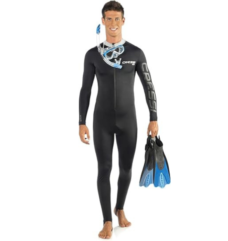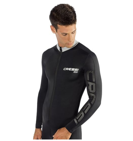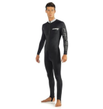 SKIN es un traje ligero y elástico tipo “segunda piel”, ideal para todo tipo de actividades acuáticas. Protege contra rayos UV, rozaduras y medusas, ofreciendo gran libertad de movimiento y confort. Puede usarse solo o como capa interior bajo el neopreno, con cremallera frontal para fácil colocación.