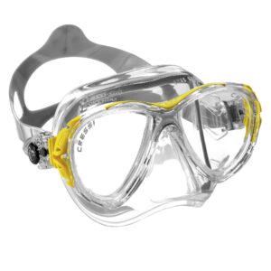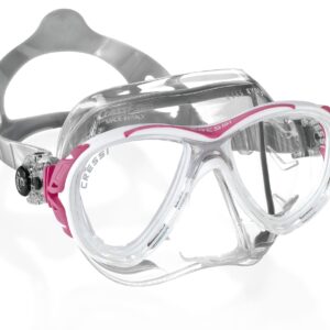 NAXOS es una máscara compacta que ofrece amplio campo de visión y ajuste perfecto a diferentes rostros gracias a su diseño ergonómico. Incorpora sistema antiempañamiento por termorregulación, que canaliza el aire y reduce la humedad en los cristales, garantizando una visión clara en cada inmersión.